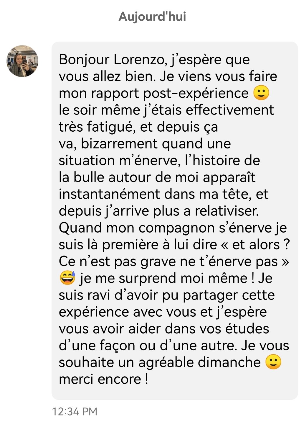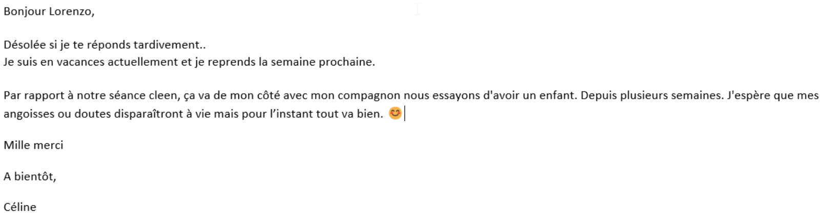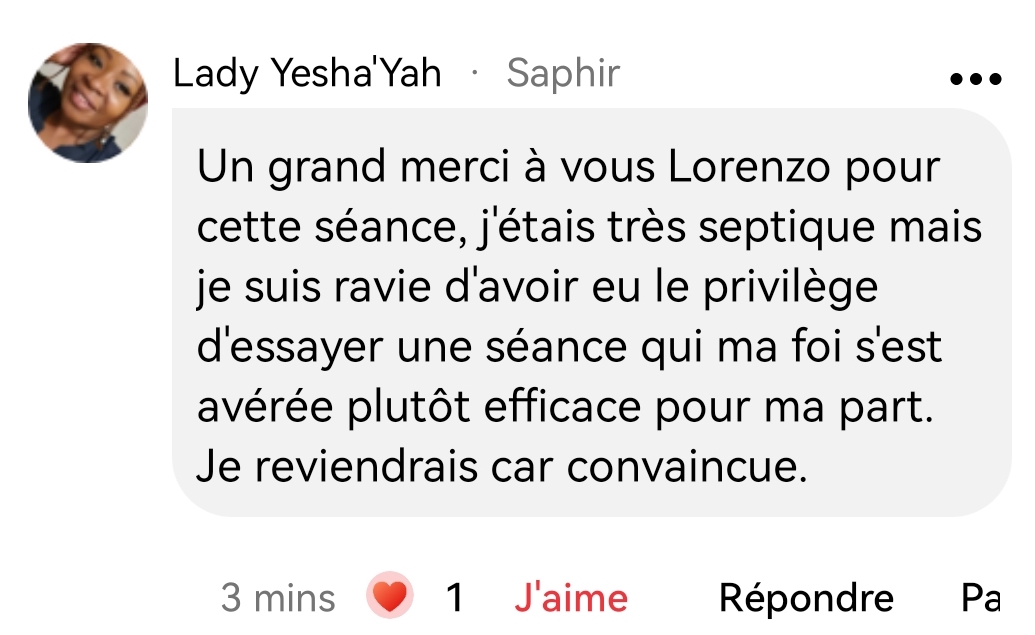 A l'issue de cette entrevue, vous ressentirez un apaisement et