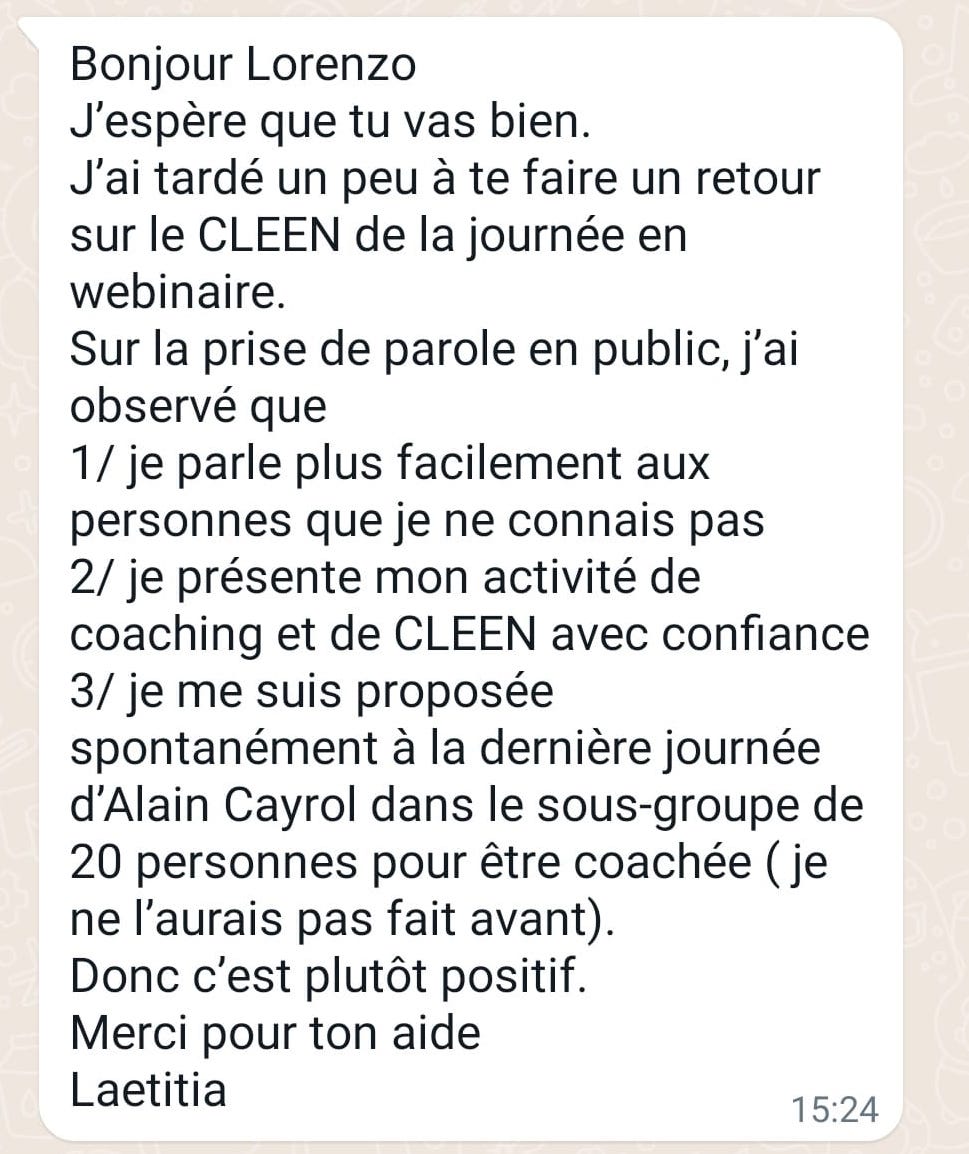 Celle-ci s'enregistre dans les nouvelles techniques des neurosciences. Dans ce champ qu’on appelle aujourd’hui l’Intelligence Emotionnelle. La méthode CLEEN est une méthode concrète et redoutable d'efficacité. Elle permet à toute personne de se débarrasser de façon rapide, facile et définitive, de toutes les réactions émotionnelles négatives. (Les inhibitions, les peurs, la colère, le deuil, le manque de confiance, la prise de parole en public, les phobies, la tristesse, les angoisses, le stress, etc...).